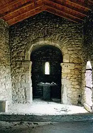 La nef est séparée du chœur par un arc triomphal outrepassé et chanfreiné[7] qui repose sur des impostes moulurées carolingiennes[6] portées par des piédroits harpés faits de blocs de pierre massifs.
