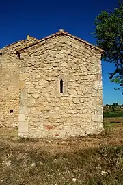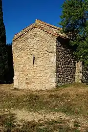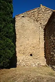 À l'est, la chapelle présente un chevet plat[7] édifié en moellons assemblés en appareil irrégulier et recouvert de tuiles rouges.