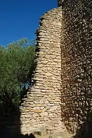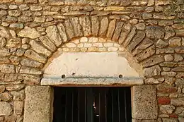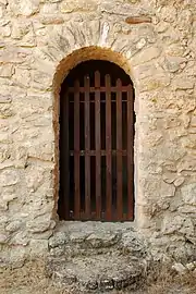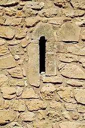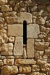 Ses faces sont cantonnées de chaînages d'angle composés de blocs de pierre de taille de grande dimension et percées, à l'est et au sud, de deux fenêtres en forme de meurtrière à l'arc monolithe[7] et aux harpes fort prononcées.