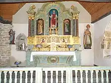 Le retable, daté de 1676 et classé par les monuments historique, fut rénové en 1996 pour lui redonner son éclat d'origine. Au centre, il possède une statue de saint Laurent vêtu d'un dalmatique. À sa gauche est peinte une représentation de saint Augustin et à sa droite une de saint Thomas. Sur les côtés, une statue de saint Lubin à droite et de Notre-Dame de Toute Aide à gauche, tenant Jésus dans ses bras, complètent ce retable.