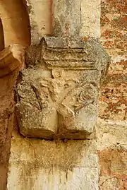 De part et d'autre de l'entrée du chœur, on distingue encore les vestiges des colonnettes engagées et des chapiteaux qui supportaient l'arc triomphal[2].