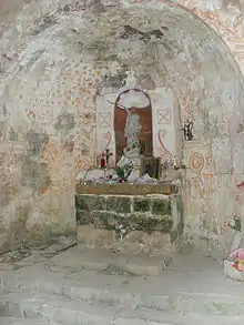 Au début du XXe siècle, un visiteur nota : « Les remous de la Nesque ont pratiqué… des creux assez profonds pour devenir de véritables cavernes, parfois superposées en plusieurs étages comme, par exemple, les trois énormes affouillements qui surplombent l'antique ermitage Saint-Michel »[3]. La dédicace à saint Michel Archange est traditionnelle pour les lieux de culte chrétiens, tant sur des sommets que dans des grottes ou des gorges pour les protéger des forces maléfiques, préserver les pèlerins des accidents, et les guérir des maux du corps et de l’âme[1]. Avant la Seconde Guerre mondiale, s'y déroulait un pèlerinage le 29 septembre, jour de la fête de l'archange[2].