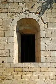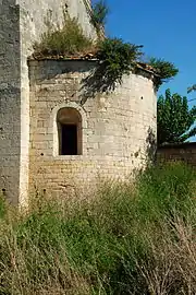 Cette abside possède une fenêtre axiale murée et une fenêtre orientée au sud, à simple ébrasement.