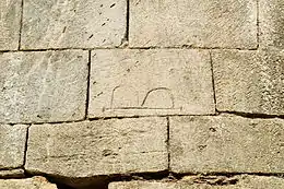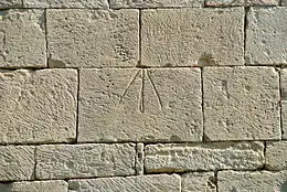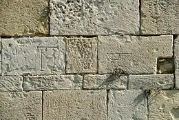 On notera, sur l'abside, un signe en forme de lettre B couchée au-dessus de la fenêtre axiale murée et, sur la façade méridionale de la nef, une patte d'oie, un signe en forme de lettre M[6] surmonté d'une barre et un signe en forme de lettre P couchée.