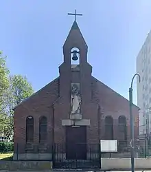 C'est un édifice fait d'une large nef unique couverte d'une voûte trapézoïdale à doubleaux et nervures. Les murs extérieurs sont couverts d'un revêtement en briques[2].