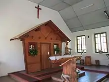 À l'intérieur de l'édifice, l'autel est façonné par Louis Converset et Cyrille Voisin en 1965[1].