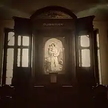 Le panneau central contient, nous l'avons vu, le tableau de l'Humanité personnifié par Clotilde de Vaux. Dernière particularité de cet autel, un tabernacle qui se trouve à la base du triptyque. À l’origine figurait, conformément au testament de Comte, un coussin en cachemire blanc portant une citation du philosophe en caractères verts: « On ne peut pas toujours penser mais on peut toujours aimer ». Ce coussin supportait un exemplaire du Testament d'Auguste Comte, une corbeille de fleurs artificielles, la Divine Comédie de Dante, L'imitation de Jesus Christ et un exemplaire du Catéchisme positiviste de Comte.