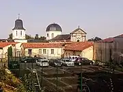 Le bâtiment est construit en pierre de taille, avec un toit en ardoise, suivi d'un toit à pan pour la nef centrale voûtée en berceau, appentis pour les bas-côtés voûtés d'arêtes et d'un dôme octogonal pour le chœur coiffé d'une coupole. Quant aux bâtiments conventuels, ils sont construits en moellons enduits et couverts d'un toit en longs pans en ardoise. À l'ouest une ancienne maison a été remaniée pour être intégré au couvent.