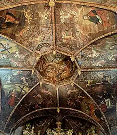 En 1701, le plafond en bois est décoré de peintures, signées Guy, exaltant le culte de la Vraie Croix.