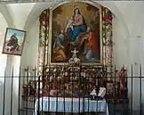 À l'intérieur de la chapelle, un tableau, placé au dessus de l'autel, représente la Vierge et son enfant entourés de saint-Grégoire et de Joseph.