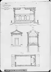 Amédée de Césena en donne la description suivante en 1864[6] : « On dirait un vaste tombeau. Aux quatre angles extérieurs sont des pilastres d'ordre dorique qui soutiennent un entablement orné d'un fronton et décoré de modillons et de triglyphes. On remarque à l'extérieur, à droite et à gauche du perron de sept marches qui précèdent l'édifice, des cassolettes en fonte posées sur des socles de pierre ; à l'intérieur, un autel de marbre blanc, élevé de deux marches, et accompagné à droite et à gauche, de candélabres, également en marbre blanc, supportés par des socles de marbre bleu turquin. »