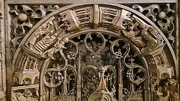 Retable en albâtre et bois doré (réutilisé pour surmonter le mausolée de Maximilien II) (1550).