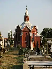 - La chapelle Vuković-Marton a été construite en 1901 selon un projet de l'architecte Géza Kocka ; elle est caractéristique du style néo-Renaissance auquel se mêlent des éléments Sécession. Elle est édifiée sur une base carrée et est dominée par un dôme hexagonal. Elle est constituée de briques et est dotée de contreforts de style Sécession en pierre artificielle[2].