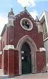 Chapelle d'architecture Néo-Gothique en briques rouge et en grès de calcaire. La toiture, à l'origine en ardoises, est à présent en Zinc. La porte en fer comporte une petite fente qui servait autrefois à recevoir les offrandes des dévots que le prêtre allait chercher. (cette pratique n'existe plus de nos jours)