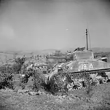 À 10,50 heures 27 chars Sherman se mettent en route afin d'attaquer un objectif rendu peu visible par la configuration du terrain.