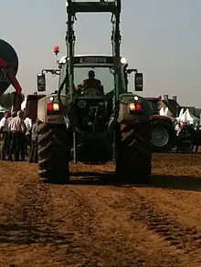 Cependant les chargeurs frontaux (parfois arrière) installés comme équipement sur les tracteurs agricoles ainsi que les chariots télescopiques sont beaucoup plus communs en agriculture. Le chargeur frontal peut nécessiter l'ajout d'un renfort de chassis. Le chargeur arrière est plus facile à utiliser avec un poste de conduite réversible (Fendt par exemple). Ces outils sont couramment installés sur tracteurs à quatre roues motrices éventuellement articulés[5].