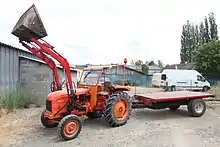 Le chargeur frontal est un équipement courant des tracteurs sur pneus.
