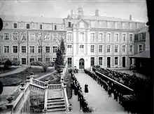 Initialement, le pensionnat devait non seulement être dévolu à un hôpital auxiliaire mais aussi être réquisitionné pour le logement de réservistes[alpha 20]. Le 2 août 1914, Charles Collier note qu'aucune démarche militaire n'a été faite en ce sens[34]. Un mois plus tard, le 8 septembre 1914, il reçoit l'approbation de l'inspecteur d'académie pour la reprise des classes le 1er octobre suivant[35], donnant naissance à sa réputation de « double sauveur » du pensionnat[alpha 21].