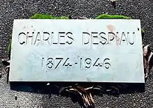 Dénoncé comme collaborateur en 1944, Charles Despiau est « mis à l'index » le [22] puis condamné a deux ans d'interdiction d'exposer par le comité national d’épuration des artistes peintres, dessinateurs, sculpteurs et graveurs, le [23], il vit alors enfermé dans son atelier parisien et meurt d'une congestion pulmonaire le en son domicile, au no 49, rue Brillat Savarin dans le 13e arrondissement de Paris[24],[25]. Il est inhumé au cimetière du Centre de Mont-de-Marsan[26],[27].