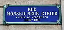 Il n'accède à l'épiscopat qu'après la séparation de l'Église et de l'État : il est nommé évêque de Versailles, le . Il reçoit la consécration épiscopale des mains de du pape Pie X, le . À Versailles, Gibier reproduit l'action pastorale qu'il avait menée à Orléans. Il fait construire des églises et des salles paroissiales, est proche de ses fidèles, auxquels il s'adresse dans un style populaire. Il encourage les initiatives, répondant aux enjeux de son époque, en encourageant la vie commune des prêtres ou encore le syndicalisme catholique. Le caractère social de son action est manifesté par la fondation en de l'Action sociale de Seine-et-Oise. Cette organisation joue un rôle important lors de la Première Guerre mondiale et son utilité publique est reconnue lorsque son directeur reçoit la Légion d'honneur en .