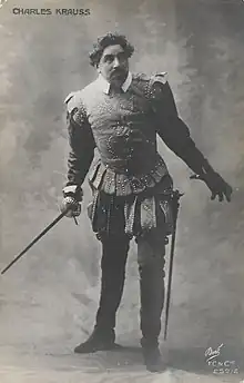 Sa personnalité intéresse un impresario belge qui lui conseille de faire du théâtre. Krauss fait ses débuts à l’Alhambra de Bruxelles. Il joue des rôles important dans le répertoire classique tel que Hamlet, Ruy Blas ou le chevalier de Lagardère. Un peu plus tard, il entre dans la compagnie de Sarah Bernhardt qu'il accompagne, à la fois, dans des tournées américaines et parisiennes.