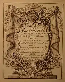 - Livre de chiffres à simples traits où l'on trouve les noms et surnoms, utile à tous peintres, sculpteurs, graveurs et autres. Dessiné et gravé par Mavelot... Paris : l'auteur, c. 1680. 8° carré, [4]-37 f.