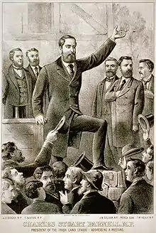 Le profil de Charles Stewart Parnell ne semble donc pas le destiner à la contestation de l'ordre anglais établi : il est grand propriétaire terrien, « parfait représentant du landlordisme »[1], protestant anglican en tant que membre de l'Église établie d'Irlande (composée essentiellement d'unionistes), lié à l'aristocratie par ses cousins, les Powerscourt, et même, de manière lointaine, à la famille royale. Cependant, c'est en tant que leader du nationalisme irlandais qu'il bâtit sa réputation.