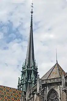 Il réalise en 1893 la réfection de la flèche de la cathédrale Saint-Bénigne de Dijon[9], dernière en date des grandes flèches de cathédrales françaises du XIXe siècle après Orléans et Paris. Il restaure le château de La Rochepot en complétant l'édifice ruiné dans ses moindres détails, notamment à partir de l'étude qu'il réalise du château contemporain de Châteauneuf-en-Auxois.