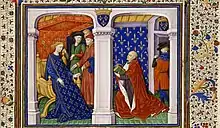 La noblesse normande est cependant divisée. Notamment, il existe depuis des générations un conflit entre les maisons de Tancarville et d'Harcourt[17]. Les rois de France soutiennent traditionnellement les comtes de Tancarville, auxquels ils confient la charge de chambellan de l'Échiquier de Normandie. Les échiquiers avaient l'ultime juridiction qui tranchait au civil comme au pénal en dernier ressort c. Comme l'Échiquier ne siégeait que deux fois l’année, lorsqu’il y avait des affaires provisoires, en attendant la tenue de l'Échiquier, c'était le sénéchal de Normandie qui y présidait et appelait des membres du clergé et de la noblesse à siéger avec voix délibérative.