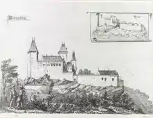 Le château d'Eguisheim réagencé par Charles Winkler : le logis et la chapelle Saint-Léon.