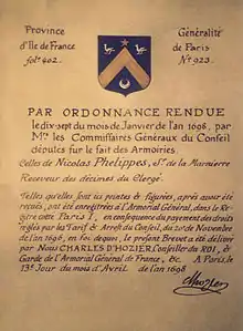 Charles René d'Hozier a publié le Grand Armorial de France, établi sur ordre de Louis XIV en 1696, qui comprend 120 000 blasons peints.