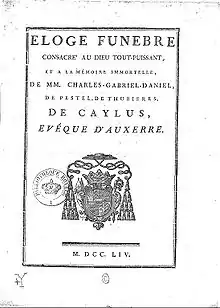 Charles de Caylus, né le à Paris, mort le près d'Auxerre[2], et un homme d'Église français des XVIIe et XVIIIe siècles. Il est évêque d'Auxerre de 1704 jusqu'à sa mort, à l'âge de 85 ans. Exilé dans son diocèse pendant un temps pour ses opinions jansénistes, il le transforme profondément et en fait un bastion du jansénisme.