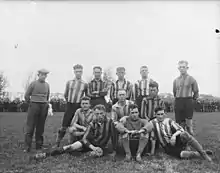 Les membres fondateurs du club décident de baptiser leur club Excelsior et optent pour des couleurs rouges et blanches[2]. Ils collectent le matériel nécessaire pour jouer au football dans les cafés des environs et se mettent à jouer des matchs amicaux le dimanche, ce qui entraîne des plaintes des paroissiens de l'église locale qui veulent les empêcher de jouer le dimanche[C 1].