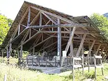 Ruines de l'église cartusienne sous le toit de protection installé par le Conseil départemental de l'Isère (été 2017) | ||||