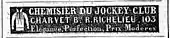En 1839, Charvet avait déjà des imitateurs[n. 3], mais toujours « le meilleur assortiment »[28]. La même année, il était le chemisier officiel[20] du Jockey Club, un cercle prestigieux dirigé par le prince Napoléon Joseph Ney et inspiré par un célèbre dandy, le comte Alfred d'Orsay[29]. Il comptait environ 250 membres, pour la plupart des aristocrates plus intéressés par l'élégance que par les chevaux. Devenir membre du Jockey Club était une condition nécessaire pour faire partie des « lions de la fashion », selon la formulation adoptée par Charvet dans une publicité de 1838, « lion » étant le terme de l'époque pour un dandy[30],[n. 4]. Dans une publicité de mars 1839, Christofle Charvet, se présentant le chemisier du Club, annonce offrir « élégance, perfection, prix modérés »[36]. Peu après, la référence aux prix modérés est abandonnée[37].