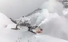 Draisine équipée de socs chasse-neige en action en gare de Bourg-Saint-Maurice.