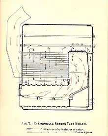 Pour plus d'efficacité, la chaudière était généralement entourée d'une chambre construite en briques. Les gaz de combustion étaient acheminés à travers cette chambre, à l'extérieur de l'enveloppe en fer de la chaudière, après avoir traversé le tube de fumées, jusqu'à une cheminée placée à l'avant de la chaudière.