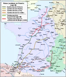 Il conduisait les pèlerins venant d'Allemagne par Toul ou Strasbourg via Dijon, de Suisse alémanique via Bâle, vers Le Puy en passant par :
