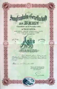 Le chemin de fer de la Jungfrau tire son nom du plus haut des trois sommets qui le surplombent : la Jungfrau (4 158 mètres). Le projet d'un ascenseur reliant le sommet de la Jungfrau par un chemin de fer souterrain était initialement prévu. En 1912, le projet s'est finalement terminé au Jungfraujoch, le plateau entre le Mönch et la Jungfrau.