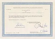Action de la Bayerische Zugspitzbahn AG en date du Aout 1977