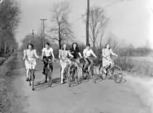 Jeunes faisant du vélo sur le chemin de la Côte-Saint-Luc à Côte-Saint-Luc en 1942