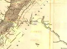 ![]() Le chemin du Portage en 1813, tel qu'il apparait sur une carte de l'arpenteur Samuel Holland |