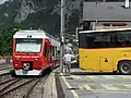 Au début de l'exploitation de la ligne, la compagnie possédait deux automotrices pour le transport des voyageurs de type BCFe 4/4 (N: 1 et 2) et deux automotrices pour le transport des marchandises de type CFe 4/4 (N:11 et 12). Il y avait également trois remorques pour les voyageurs et quatre wagons plats pour le transport des marchandises[7]. Remarquons que les wagons de marchandises des CFF pouvaient également rouler sur cette ligne.