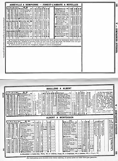 - Le , la ligne de Noyelles à Forest-l'Abbaye est limitée à Crécy, pour les voyageurs, et maintenue de Canchy à Dompierre pour le service de la râperie de Lanchères.