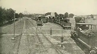 Les grands fleuves de l'est des États-Unis restant d'importants axes de communication, la région des Grands Lacs fut densément couverte de liaisons avec le Mississippi et le Missouri, la construction de ces voies s'inscrivant par ailleurs dans le projet de connexion trans-américaine vers le Pacifique[4]. Sur les quelque 30 000 miles de voies ferrées construites en 1860, 22 000 l'avaient été pendant les années 1850 dont 15 000 dans cette région, principalement dans les États de l'Indiana, de l'Illinois et de l'Ohio. Toutefois, si de nombreuses lignes avaient été tirés transversalement, notamment en direction des ports de l'Atlantique, peu de voies avaient été construites dans l'axe nord-sud, l'essentiel des communications se faisant encore par voies fluviales. Mais dès cette époque, le transport ferroviaire avait supplanté le convoyage par canaux dans le nord. Les grands centres urbains et industriels - qui constitueront aussi pendant la guerre les principaux centres de recrutement, les arsenaux et dépôts de l'Union - étaient tous reliés par le train à la veille de la guerre, différentes solutions techniques ayant été ingénieusement mises au point pour faire face au problème des écartements différents utilisés par les diverses compagnies privées[note 2].