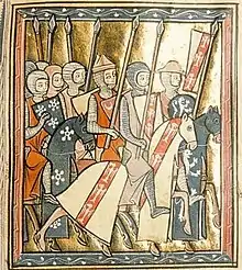 Miniature de 1287 représentant des chevaliers munis de leurs lances.