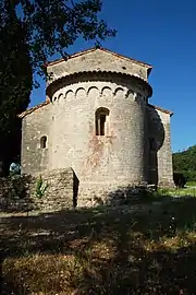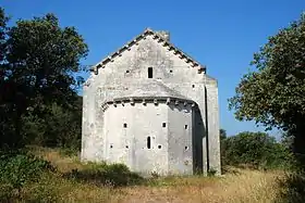 Le chevet plat caractéristique de l'architecture wisigothique se retrouve ensuite dans les chapelles relevant de l'architecture préromane de tradition wisigothique telles Saint-Laurent de Moussan et Saint-Nazaire de Roujan.