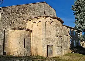 - abbatiale Saint-Polycarpe de Saint-Polycarpe (chevet roman lombard surhaussé ultérieurement, la partie surélevée étant polygonale)