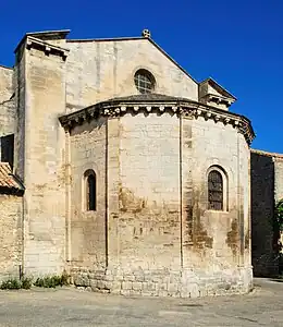 Dans certains cas, l'abside est rythmée par des pilastres (comme à La Baume-de-Transit et à Lattes), par des colonnes engagées (comme à Saint-Vincent-de-Barbeyrargues), par une combinaison de pilastres et de colonnes comme à l'abbaye Saint-Pierre-Saint-Paul de Caunes-Minervois (où la partie inférieure du chevet est ornée de colonnes engagées et la partie supérieure de pilastres) ou par des contreforts portant des colonnes comme à La Godivelle.