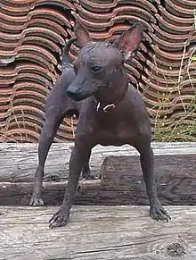Le Xoloitzcuintli est un chien sans poils originaire de Méso-Amérique. Des preuves archéologiques ont été trouvées dans les tombes des peuples Colima, Maya, Toltèque, Zapotèque et Aztèque datant de plus de 3500 ans. Longtemps considérés comme des gardiens et des protecteurs, les peuples indigènes pensaient que le Xolo protégeait la maison des mauvais esprits et des intrus. Dans l'Antiquité, les Xolos étaient souvent sacrifiés puis enterrés avec leur maître pour servir de guide à l'âme dans son voyage vers le monde souterrain des enfers. Ces chiens étaient considérés comme des mets de choix et étaient consommés lors des cérémonies sacrificielles, y compris dans les mariages et les funérailles[4].